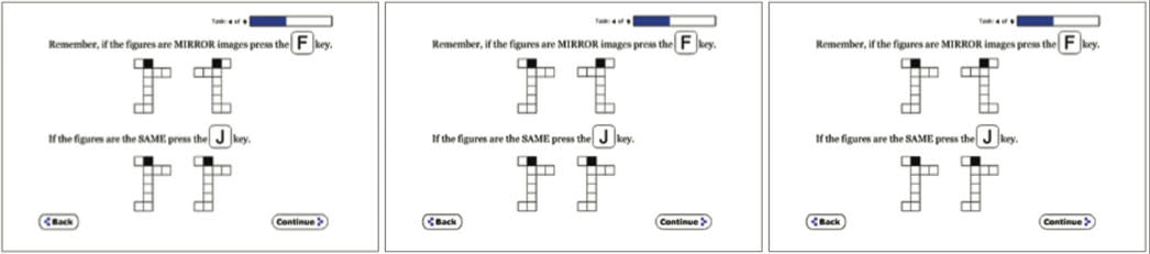 The MRAB consists of nine short Web-based exercises that measure a person’s information-processing functions. It takes about 25 minutes to complete, and users are instructed that final scores will be based on both speed and accuracy. Subtests measure the subject’s ability to focus while ignoring irrelevant information: Users are required, for instance, to rapidly indicate the number of digits in "6666" by pressing "4" rather than "6," the numeral that is actually repeating. Other subtests measure working memory, functioning similarly to the game Concentration, quizzing the user on where or when a numeral appeared on the screen.