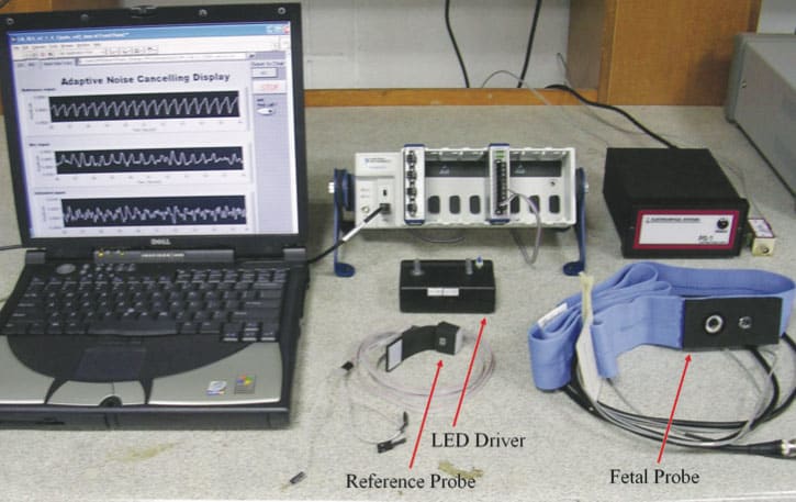 The team used LabVIEW to implement the entire algorithm and part of the instrument. After preprocessing and applying the ANC algorithm, LabVIEW displayed results for the fetal signal and the FHR.