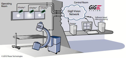 When vision system integrators are designing systems for hospital operating rooms, they have a number of technologies to choose from. The video interfacing technology with which the system will transmit imaging data to PCs or other system elements has traditionally been limited to point-to-point connections. However, as medical diagnostics and image-guided surgery grow in sophistication and demand, the need for a networked video architecture in the operating room also grows.