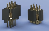 Mill-Max (Oyster Bay, NY) offers high-density, 0.050" pitch through-hole and surface mount spring-loaded connectors (SLC) available in single and double-row strip packaging. Series 854-22-0XX-10-001101 and 855-22-0XX-10-001101 through-hole insulators feature molded standoffs. Tail diameters of .016" require minimal diameter plated holes for connector mounting, maximizing signal routing between pins. Series 854-22-0XX-30-001101 and 855-22-0XX-30-001101 surface mount spring connectors are low profile, standing less than .230" tall when engaged mid-stroke (.0275"). Each SMT spring pin features a base geometry of .030" round by .010" tall to maximize soldering surface area and promote solder joint fillet.