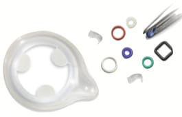 Apple Rubber Products (Lancaster, NY) offers medical silicone seals that feature resistance to UV light, ozone, and weather; hydrophobic properties; temperature range of -94 °F to 400 °F; dimensional stability in adverse conditions; and resistance to long-term compression set. The company also offers medical-grade elastomers that pass USP Class VI testing, such as Viton® fluoroelastomer (FKM) and EPDM rubber for medical applications. The elastomers feature improved chemical resistors, heat resistance (400 °F), and low permeability to gases.